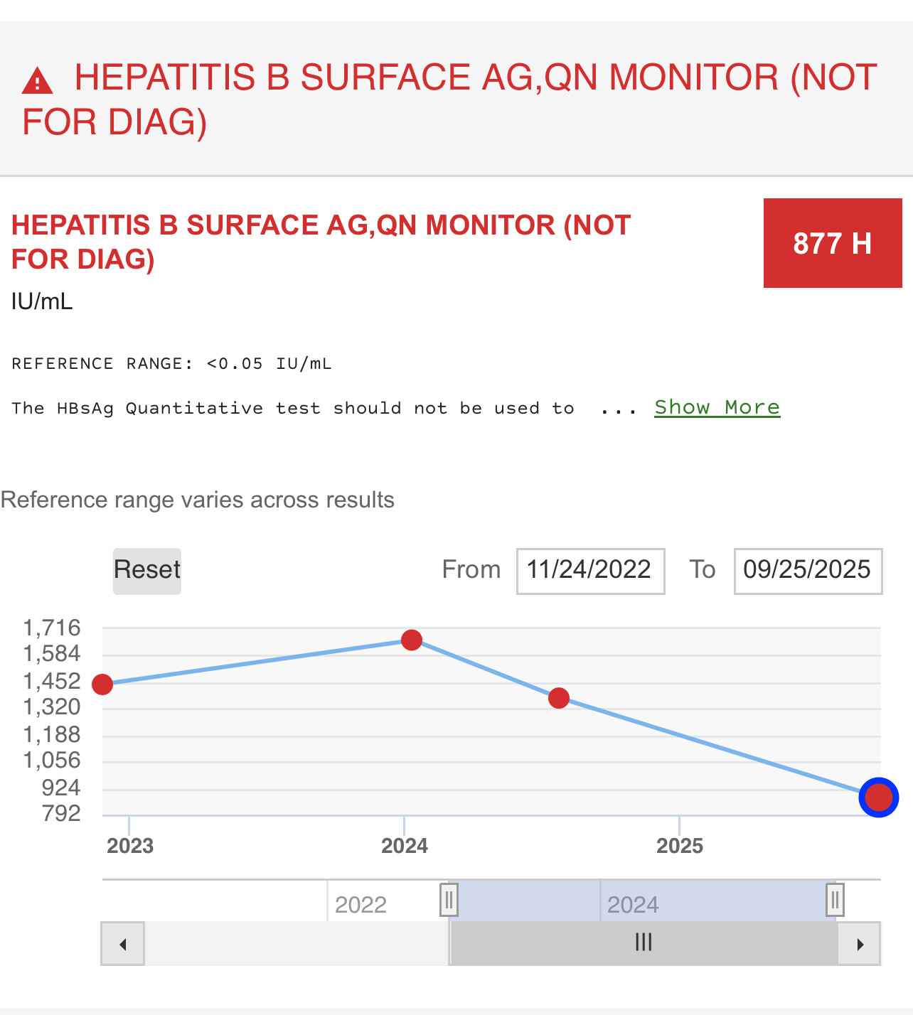 I just received my HEp B Surface antigen quantitive to be decreased from 1372 to 877 ..