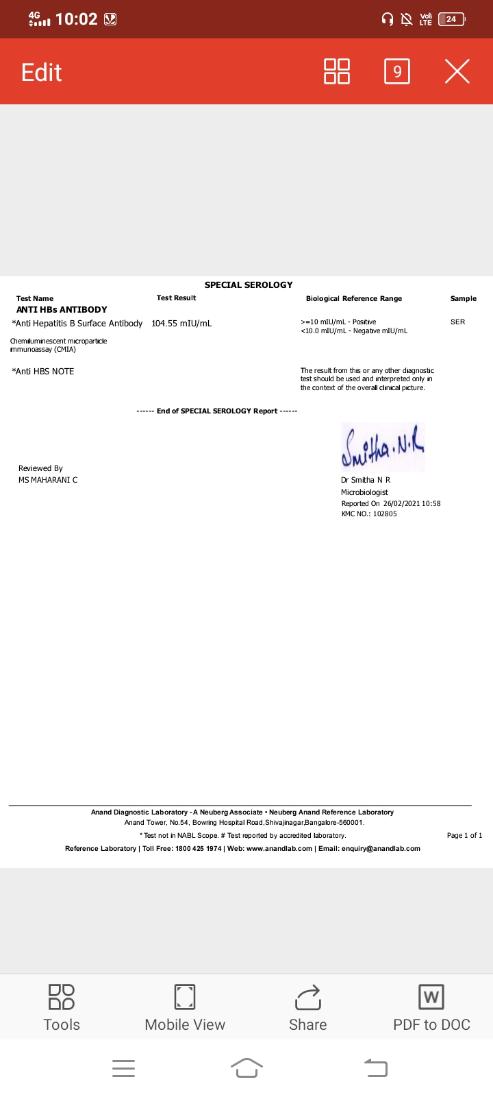 Now here comes my hepatitis b antibody report…