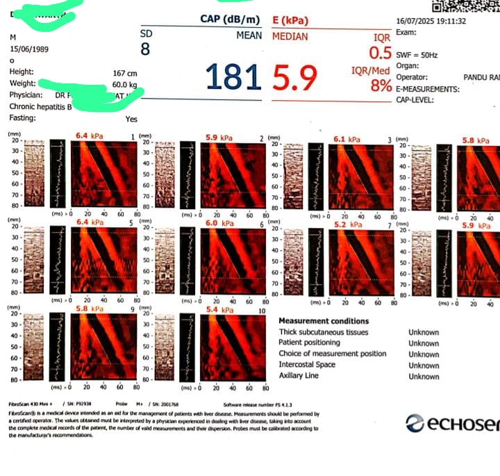 Thank you sir for your explanation and reply yesterday I did my fibroscan test ,results I am uploading here , it completely different than I expected finally my score was reduced to 8.2Kpa to 5.9Kpa