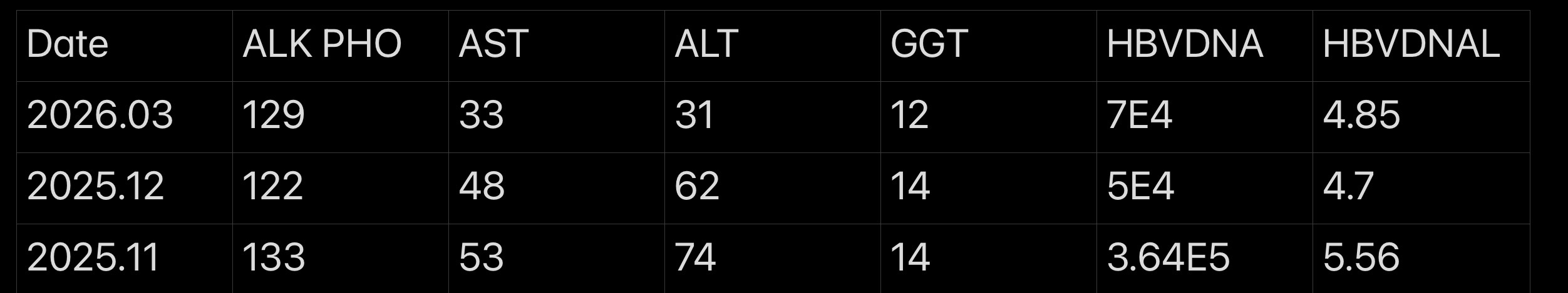 Was inactive HBC since birth and a routine health screen threw up alarming scores in Nov 2025. In the state of confusion, I resisted the doctor’s advice to start antiviral immediately. In Dec 2025, another blood test and scan was done, with the latest in early March this year. Figures in table below.