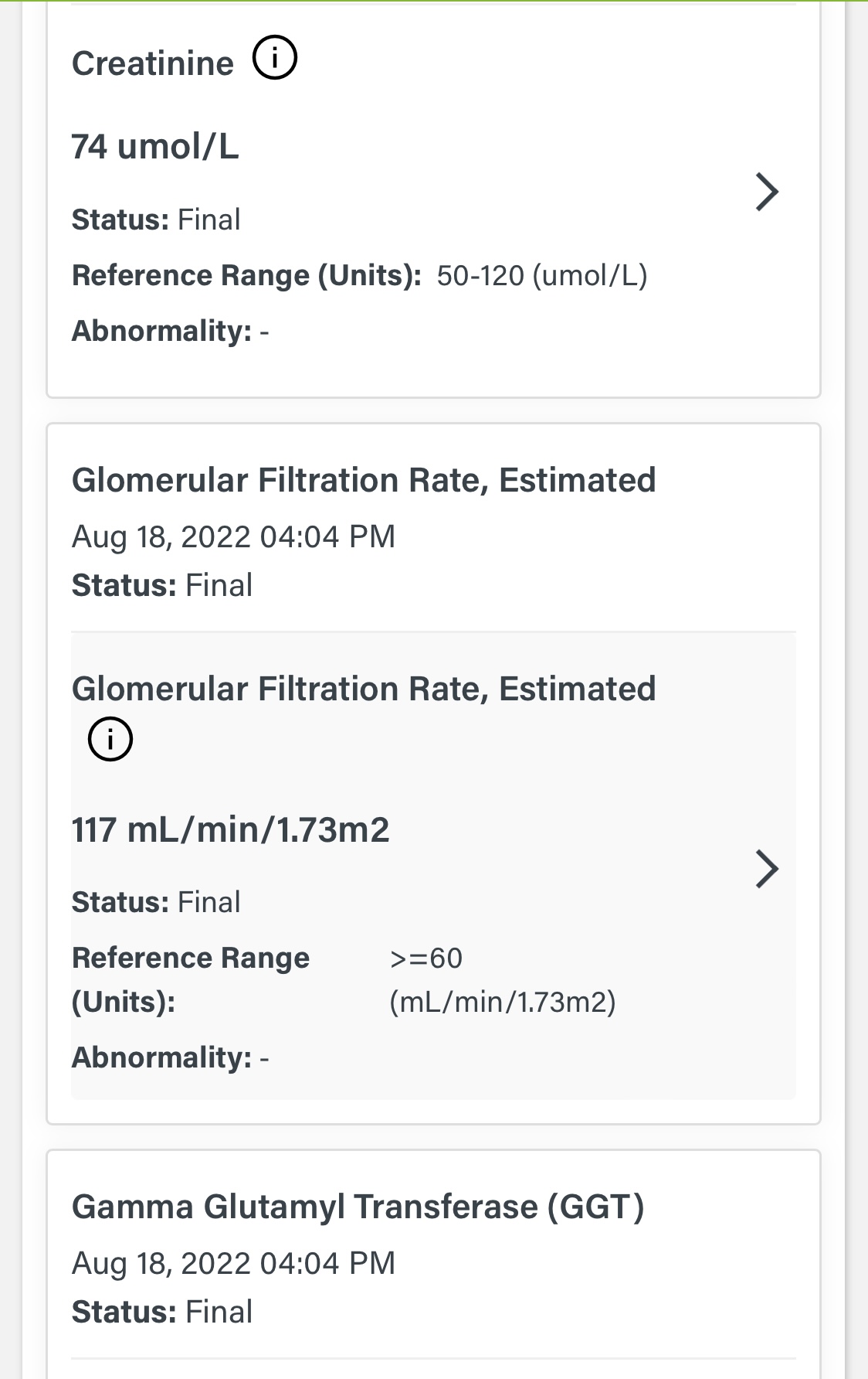The test results you have sent us are standard tests. All of these are normal but they don’t tell us anything about your HBV infection or how your liver is doing.
