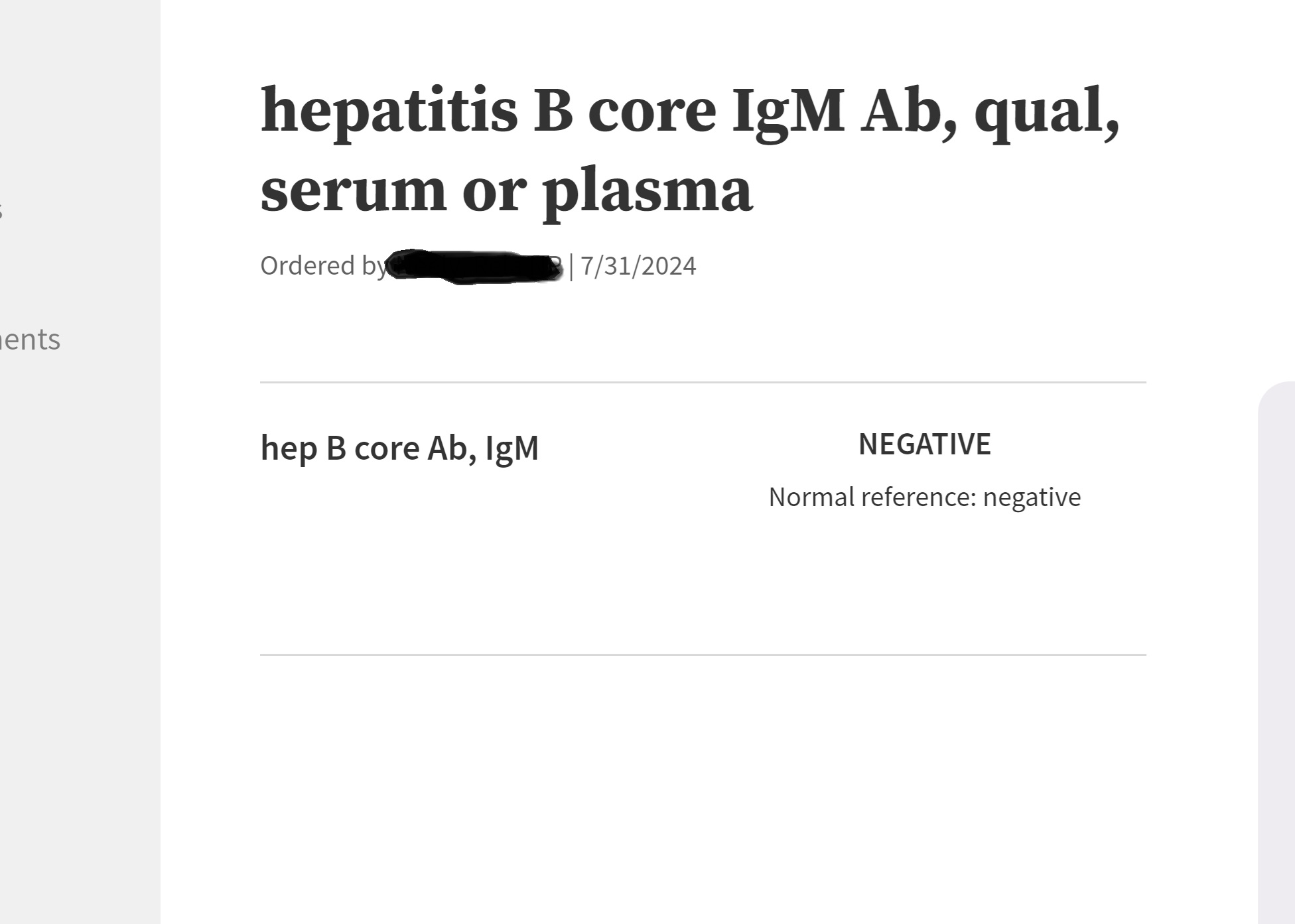 Here is the test result for my father in-law hep b lab results.