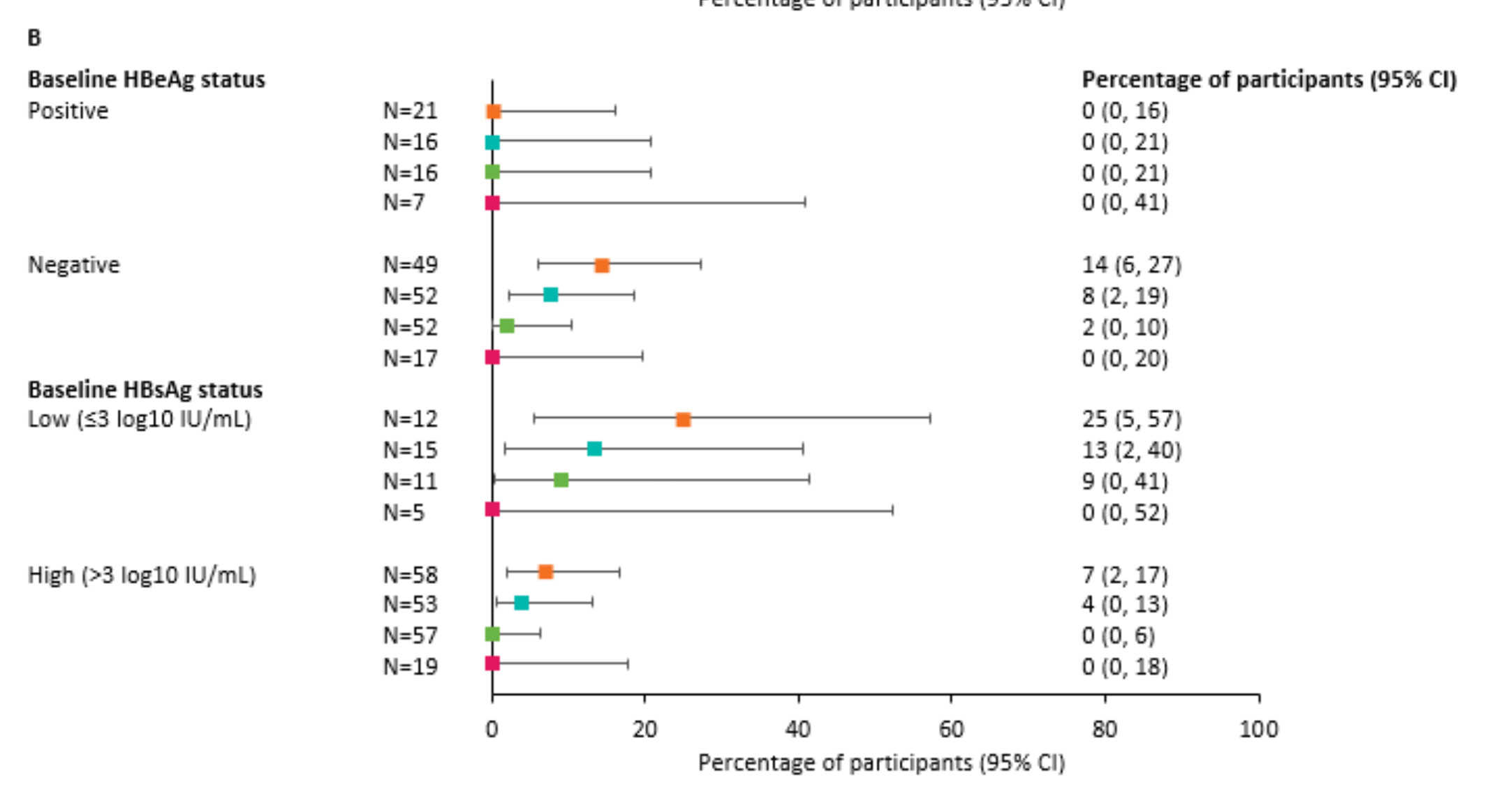 Here are 2 charts I found showing the % of patients achieving functional cure. The first one (A) shows data for patients on NUCs (tenofovir, entecavir), and the second one (B) is for people not on NUCs.